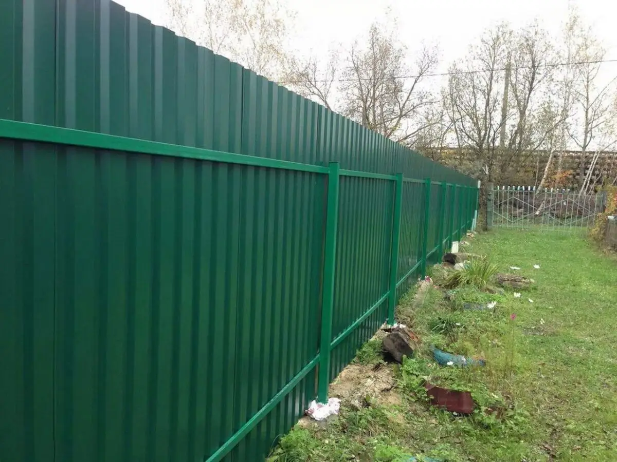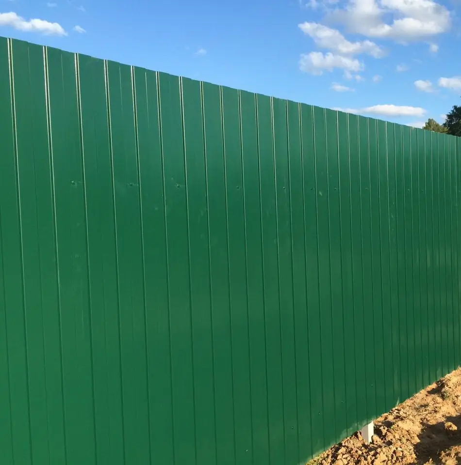 Профилированный лист МП-10x1100-A (ПЭ_Д-01-6005-0,45) — популярный материал в Анапе для обустройства забора. Представляет собой лист оцинкованной стали с покрытием. Общая толщина металла с оцинковкой и полимерным слоем составляет 0.45 мм. После проката на специальном оборудовании металл приобретает рисунок из ритмичных волн. Несущая способность профилированного листа на порядок выше плоского.